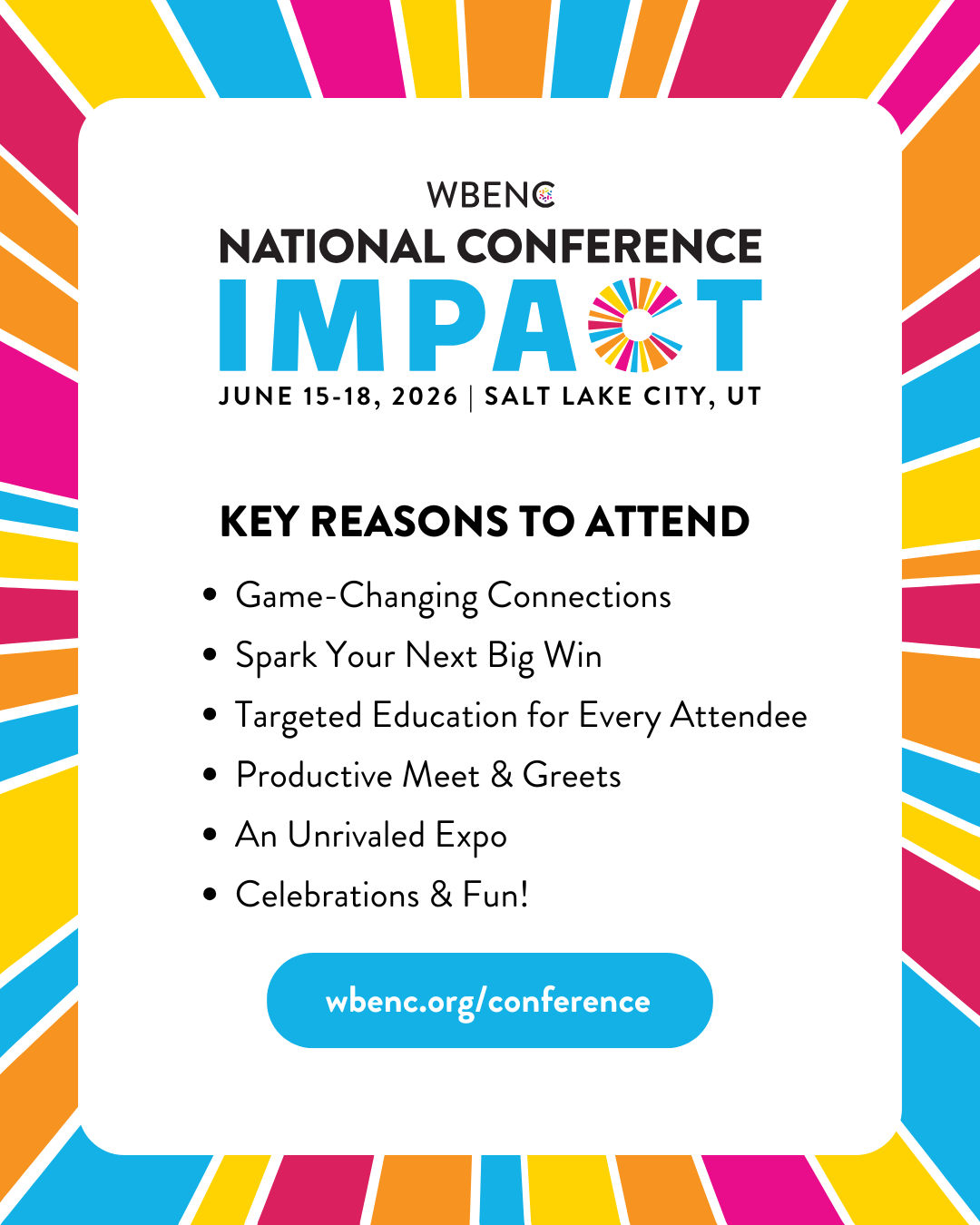 The journey to IMPACT continues at the 2026 WBENC National Conference June 15–18 in Salt Lake City. This year’s theme focuses on accelerating growth, expanding opportunity, and strengthening the strategic relationships that move businesses — and communities — forward.